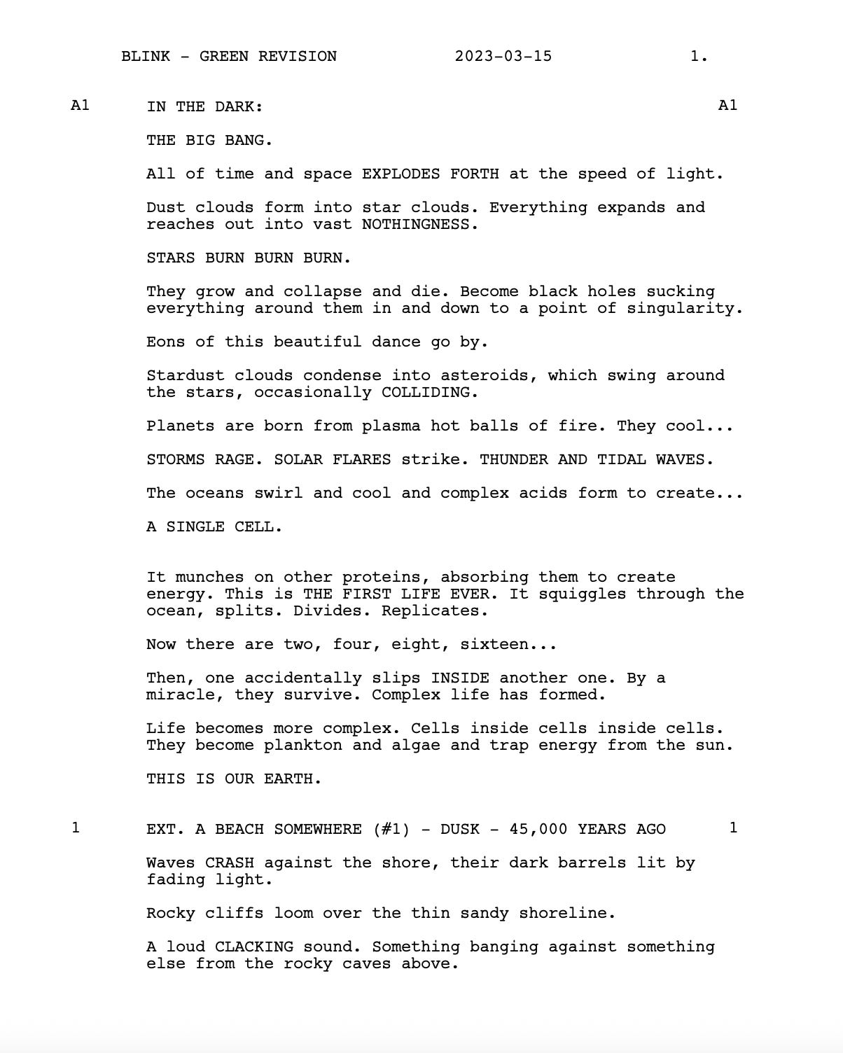 Here’s the first page of the screenplay for those of you interested.
